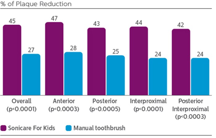 Tandplakverwijdering door Sonicare for Kids in vergelijking met een gewone tandenborstel