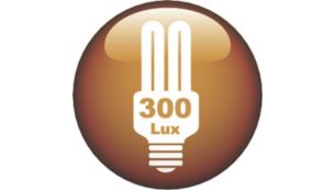 De gevoeligheid voor licht verschilt van persoon tot persoon. Over het algemeen geldt dat mensen sneller volledig ontwaken wanneer een hogere lichtsterkte wordt gebruikt. De lichtsterkte van de Wake-up Light kan worden ingesteld op een waarde tot 300 Lux. Op deze manier kunt u ontwaken met de lichtsterkte die het best past bij uw persoonlijke voorkeur.