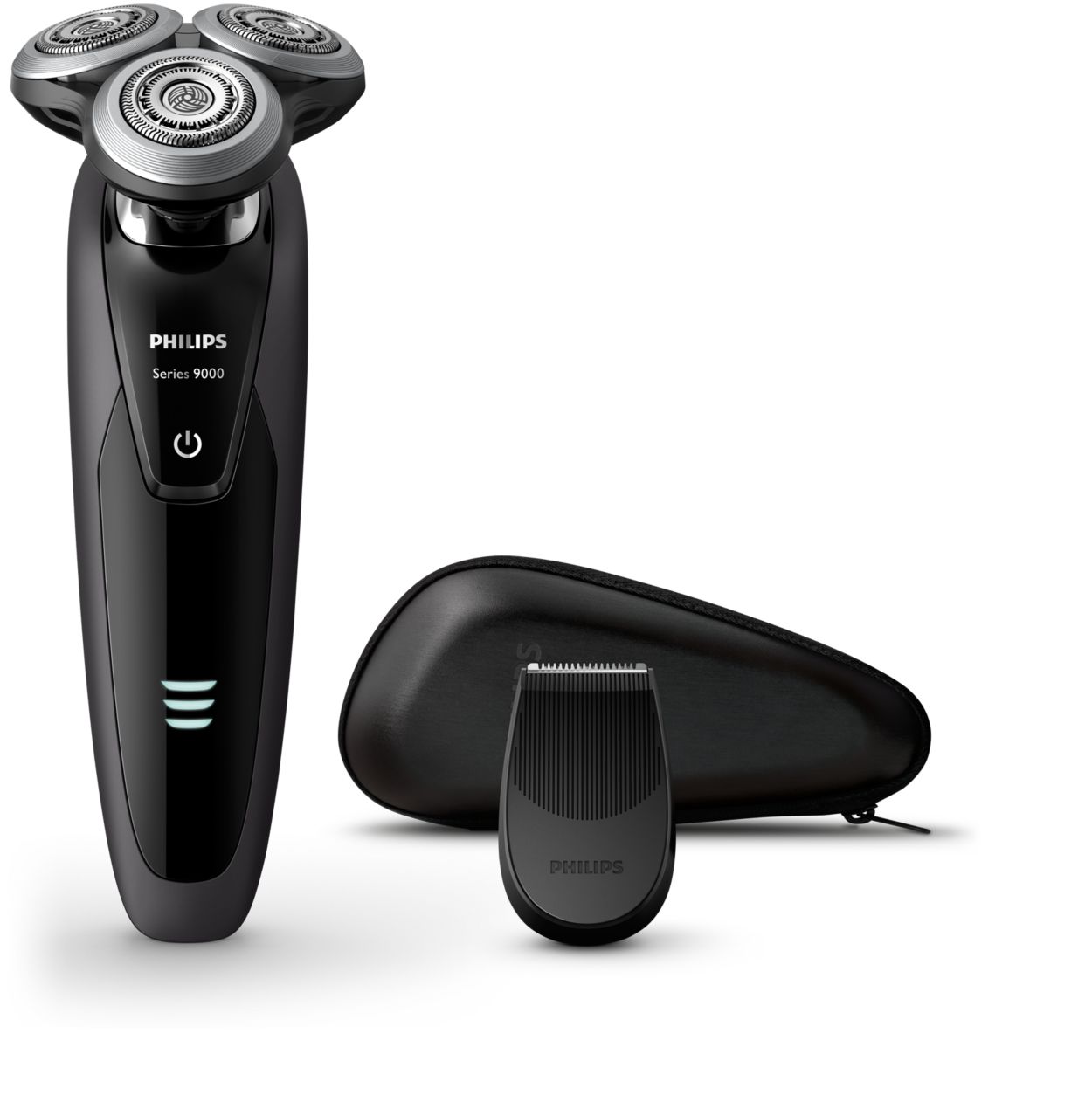 De Shaver 9000 is ons meest geavanceerde scheerapparaat tot nu toe. De unieke contourdetectietechnologie garandeert dat er geen plekje van uw gezicht wordt overgeslagen, terwijl het V-Track-systeem de haren in de beste snijpositie brengt voor het gladste resultaat.