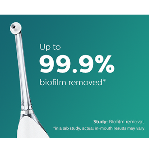 Philips Sonicare AirFloss Pro reduces oral biofilms from a thickness of 0.3mm to just a single bacteria. Its innovative approach to flossing removes up to 99.9% of biofilm bacteria from the treated area.*