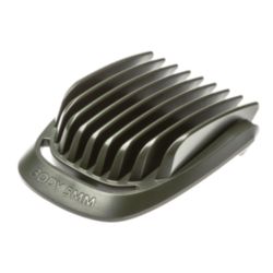 Werk snel uw gezicht en haar bij met de zeven versterkte snijplaten. Het apparaat heeft 2 stoppelkammen voor trimmen op 1 mm en 2 mm, een instelbare baardkam, 3 haarkammen van 9 mm, 12 mm en 16 mm en 1 lichaamskam.