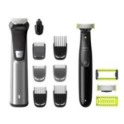 Deze complete verzorgingsset is zo samengesteld dat deze perfect bij uw verzorgingroutine past: De duurzame trimmer is ontworpen voor een nauwkeurige en krachtige trimbeurt voor gezicht-, hoofd- en lichaamshaar, terwijl OneBlade en zijn unieke technologie ideaal zijn voor het stylen en scheren van elke lengte van haar op het gezicht.